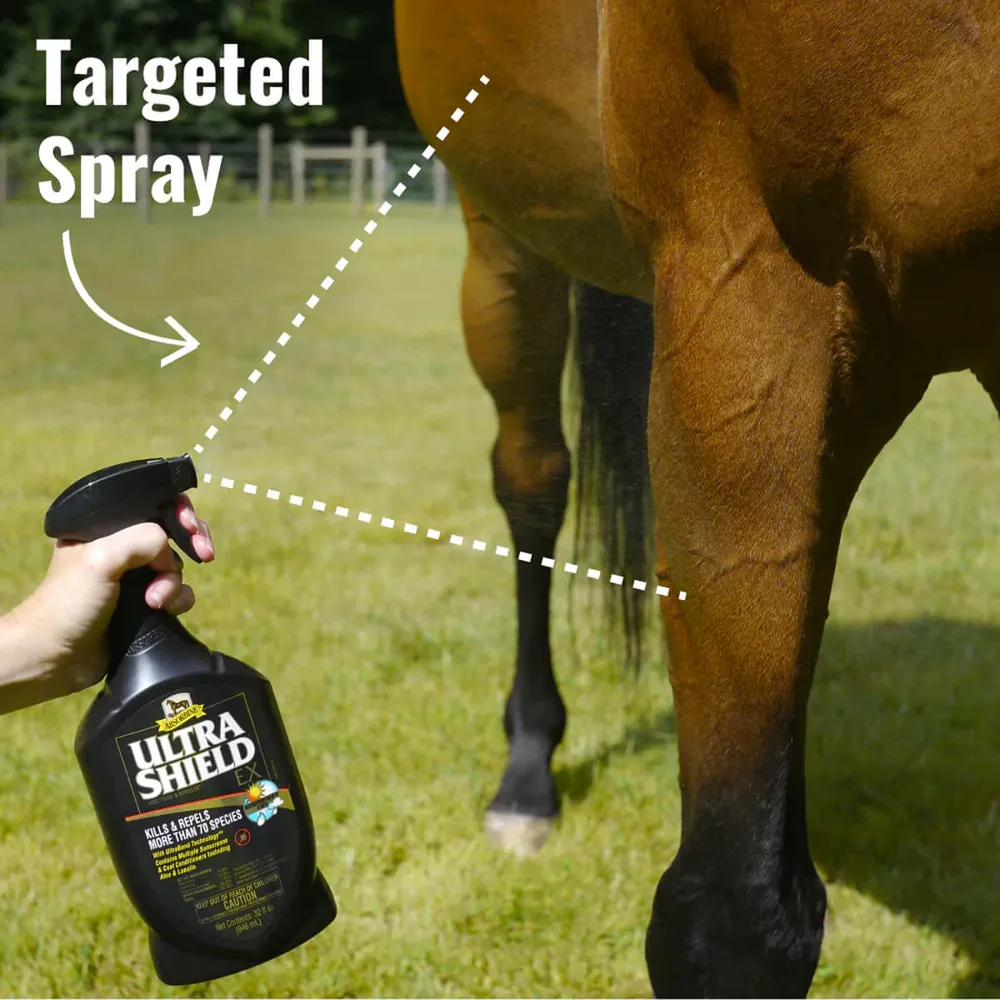 Horses – Apply as a spray or wipe; do not exceed 2 oz per application. Repeat every 7-10 days; as protection builds, every 12-17 days. Reapply after exposure to water.