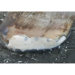 Sets in 1 minute, fully cures in 6 minutes. Can be nailed, rasped and clinched just like a natural hoof. Patented.