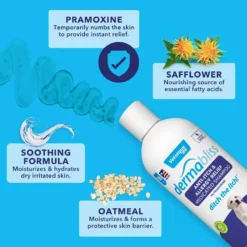 Cleanses and moisturizes with the soothing effects of pramoxine and oat extract, while safflower seed oil helps moisturize and hydrate. Promotes healthy skin and coat. Contains the maximum amount of pramoxine possible without a prescription to temporarily numb the skin and provide dogs or cats with instant relief.