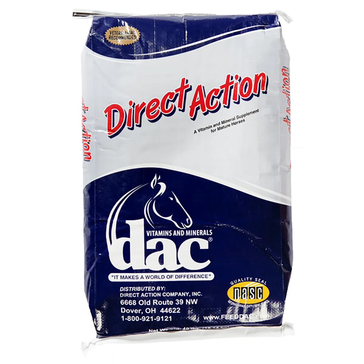 Directions: Can be fed with fortified or unfortified grains. Fortified grains contain added vitamins and minerals and require a lower feeding rate of this supplement. If fed with unfortified grains – Maintenance: 2 oz daily per 1,000 lbs body weight; Pregnant/Lactating mares, Performance horses: 4 oz daily per 1,000 lbs body weight. Consult an equine nutritionist or dac® if feeding this product with fortified grain. Scoop included.