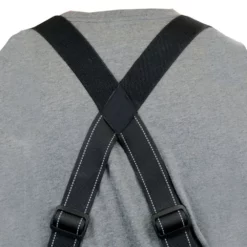 Crisscross straps keep straps in place and reduce neck and shoulder fatigue. Straps are adjustable for the perfect fit and feature strong, stainless-steel snaps. Magnetic clips and large zipper keep the chest pocket closed and clean. Features four loop locations to reduce trips to get tools, syringes and dip cups. Two deep utility pockets and two large towel pockets are cut at an angle for easy access. Vents in pockets allow water to drain quickly. For added safety, the apron has three reflective bands.Â