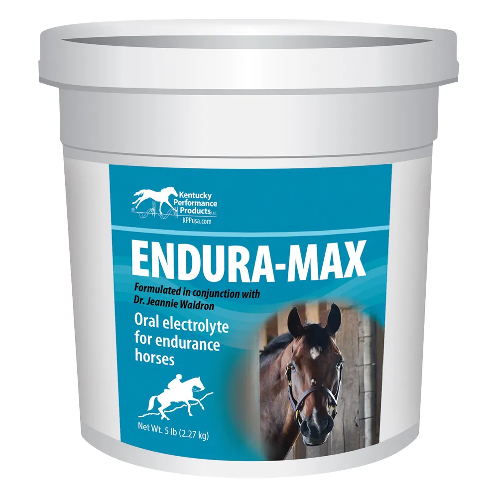 Powder electrolyte supplement designed specifically for endurance horses formulated to restore key electrolytes lost in sweat, including sodium, chloride and potassium. Endura Max also provides calcium and magnesium, minerals that may be depleted in high levels in horses subjected to low-intensity, long-duration exercise. Helps reduce the risk of metabolic disorders. Contains minimal sugar content.