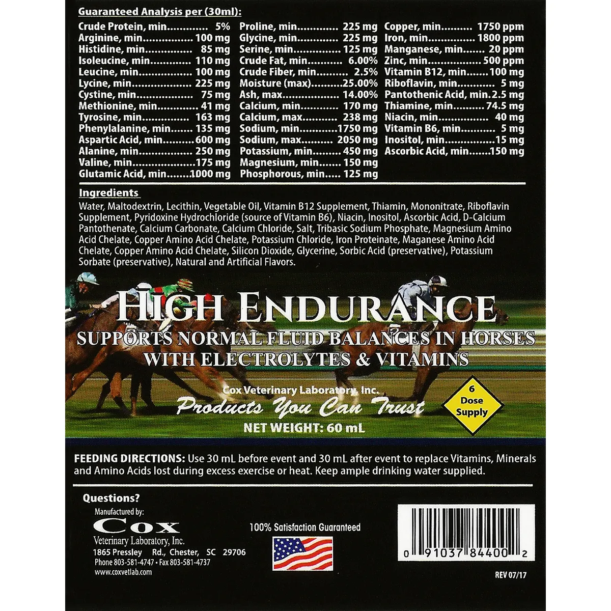 Directions: Use 30 ml of tube before event and 30 ml after event to replace vitamins, minerals, and amino acids lost during excess exercise or heat. Keep ample drinking water supplied. Each tube = 6 doses.