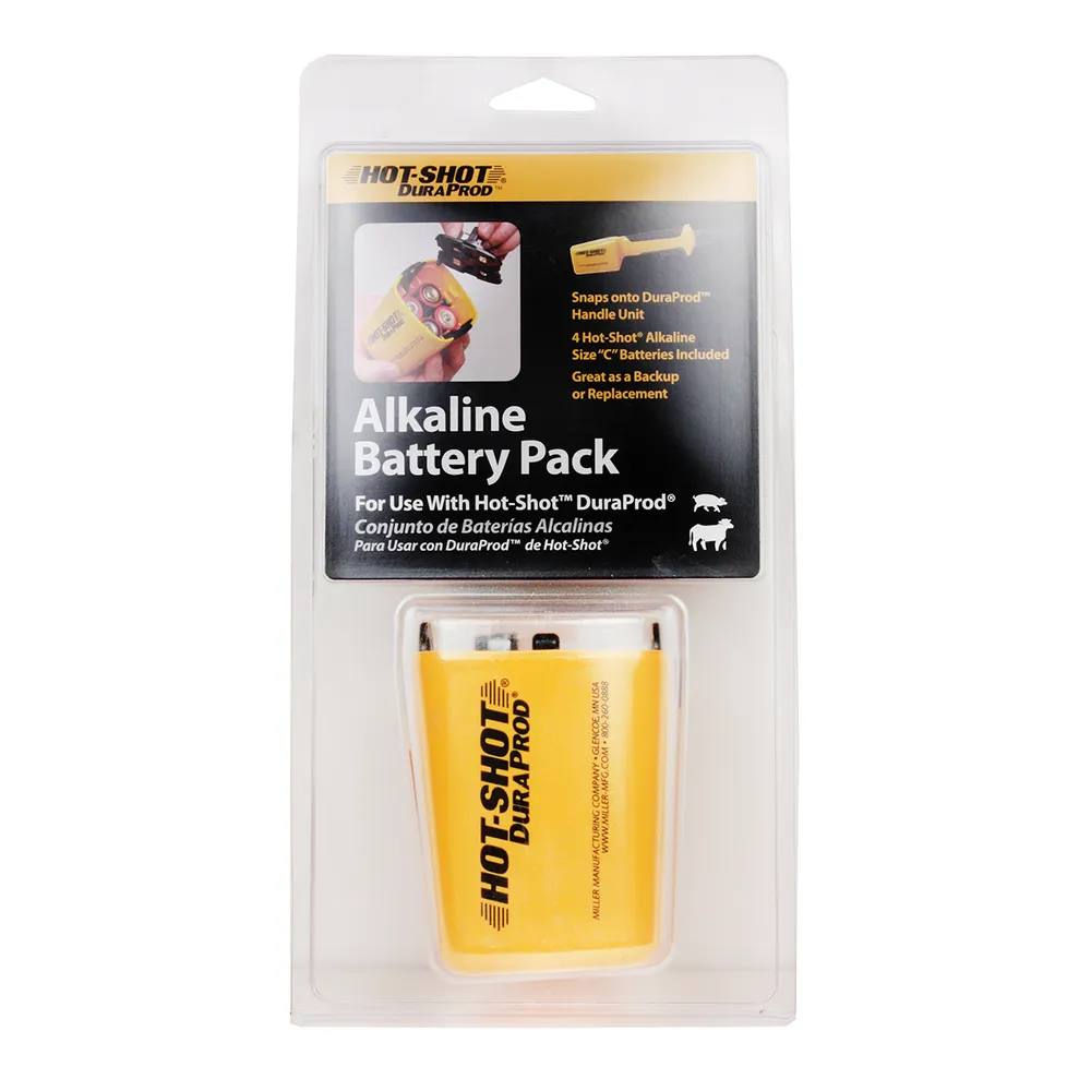 Alkaline battery pack snaps onto Hot-Shot DuraProd Livestock Prod Handle (sold separately). Includes 4 “C” batteries.