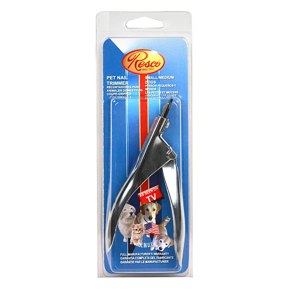 Chrome-plated dog nail trimmer features patented replaceable blade design and comfortable, ergonomic grip.