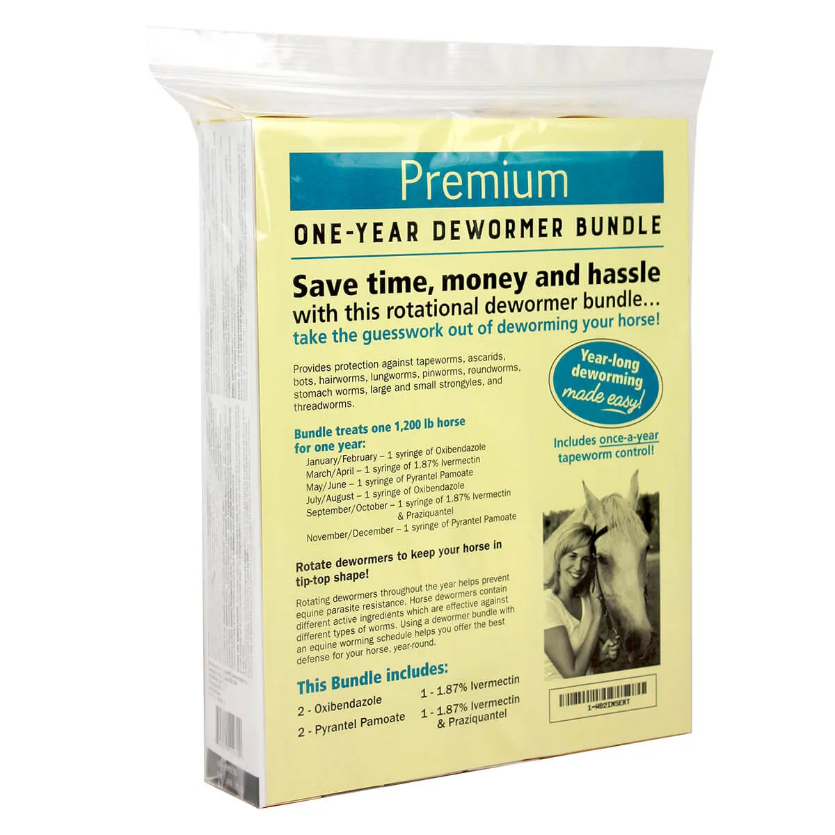 Dewormer Bundle provides protection against ascarids, bots, hairworms, lungworms, pinworms, roundworms, stomach worms, large and small strongyles, tapeworms and threadworms.