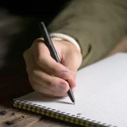 Metal click pen that writes at any angle, even upside down, in temperatures from -30° to 250°F. Skips less – writes over water, grease, fingerprints and photos. Write in the Rain Pen won’t leak, evaporate or blow up in your pocket. Black ink is permanent; won’t dry out.