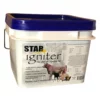 Durable polyethylene resists cracking from cold weather. Grooved handles provide secure, comfortable grip and relieve pressure of carrying heavy loads. Angle of side walls provides stability to prevent tipping and allows animals to easily access feed in corners.