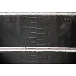 Flat back fits compactly for hanging against a wall or fence. Makes hauling heavy loads easier. Design features a wider opening, with convenient stacking ribs so buckets are easier to pull apart when stacked. Finger grips for simpler pouring and graduation marks for measuring. Molded from the finest corded rubber. Crush-, crack- and freeze-proof so they can be left outside year-round. Features heavy-duty steel handle with a rugged eyelet and handle connection. Measures 15″L x 15.5″W x 12″H. Holds 18 quarts (4.5 gallons). Black.