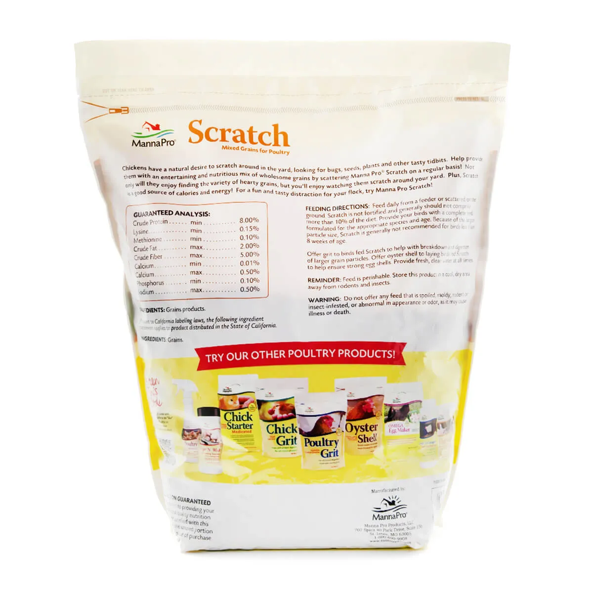 Directions: Feed daily from feeder or scattered on ground. Not fortified; should not comprise more than 10% of diet. Not recommended for birds less than 8 weeks of age.