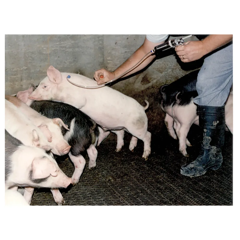 Flexible tubing for use between the needle and syringe to make vaccinating easier on animals that move or flinch upon injection. Reduces injury to handler, needle breakage, animal stress and vaccine waste.Â