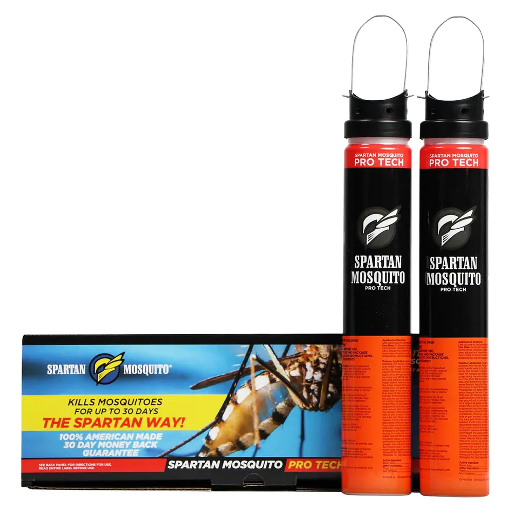 Attractive toxic sugar bait slow-release device kills mosquitoes using active ingredient, boric acid. Kills mosquitoes that may carry West Nile Virus, Zika Virus, Dengue Fever, St. Louis encephalitis, Western equine encephalitis and Eastern equine encephalitis. Doesn’t require batteries or electricity; just add warm water and shake thoroughly. Contains 1 box (2 tubes) of Spartan Mosquito Pro Tech. Place 4 tubes (2 boxes) per acre on perimeter/property line (more than 4 tubes can be used).