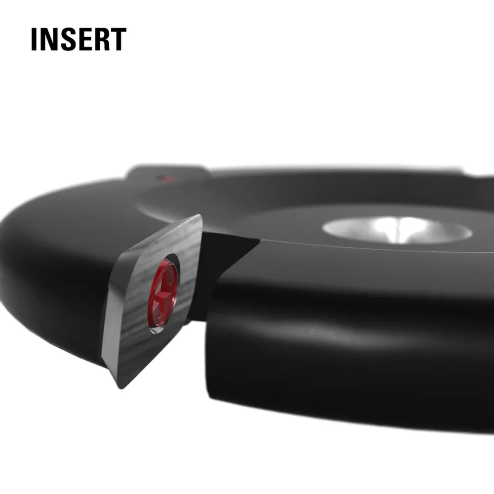 Ideal disc for large herds and professional trimmers. Disc works as a finishing disc in wood and can be used to do notches, stairs, furniture or any type of finishing work. More aggressive than the 6-slotted carbide flat disc. Trims 100 animals before inserts become dull. Inserts can be sharpened up to 3-4 times before needing replaced. Thin disc is lighter and allows easier trimming between the toes on a hoof due to the insert being exposed on the bottom. Interchangeable inserts included.