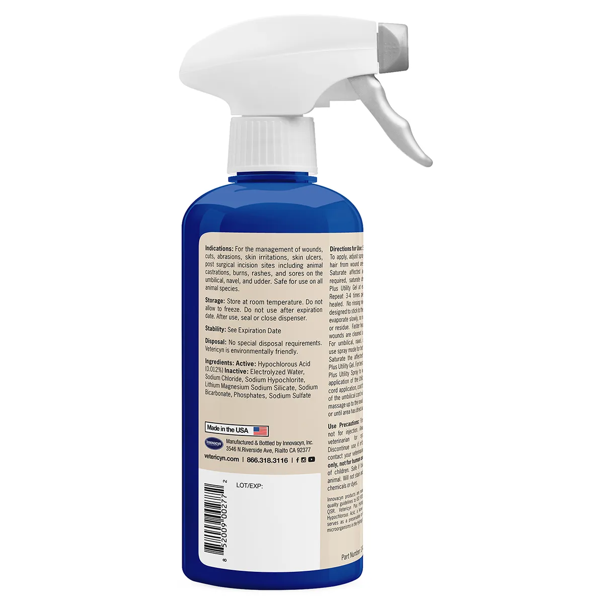 Directions: Saturate affected area. If dressing required, saturate dressing at each change. Repeat 3-4 times daily until wound is healed. No rinsing necessary. Designed to stick to site of application and evaporate slowly, no need to wipe away film or residue. Faster healing is achieved when wounds are cleaned and maintained moist. For umbilical, navel or udder application, use spray mode for better surface coverage. For best results, use Utility Spray to wash area before application of gel. For umbilical cord application, coat inside and outside of umbilical cord with gel and massage up to navel. Repeat if necessary or until area has dried and healed. No withdrawal period. Do not allow to freeze.