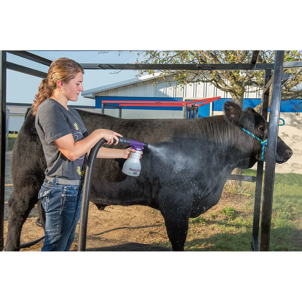 Attaches directly to a blower hose nozzle to produce a fine mist when applying grooming liquids to livestock. Works well for insect control products, too.