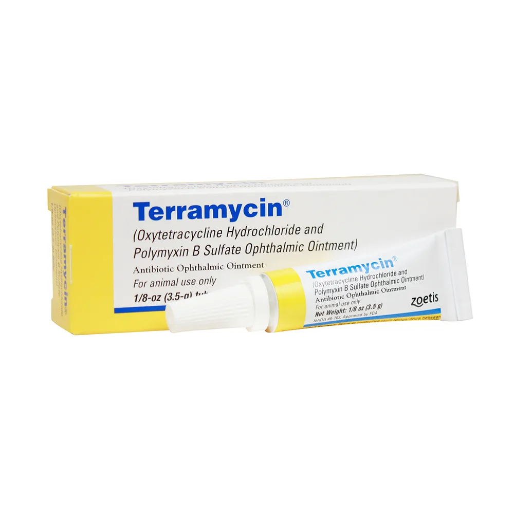 For Pink Eye and eye infections in cattle, sheep, horses, dogs and cats. A broad-spectrum topical for the prevention and treatment of ocular infections. Terramycin and polymyxin B combine for added antibacterial effect. For use in horses, cattle, sheep, dogs and cats.